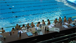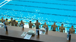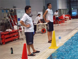 午後は選手村近くのプールに移動して退水の確認を行いました。
