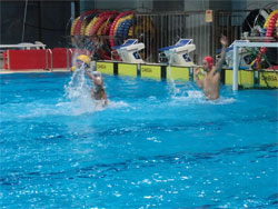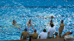 水球のゲームでは泳ぎにくい場面が頑張りどころです。