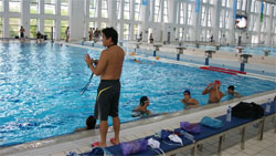 2度目は17:00から1時間、選手村近くの屋内プールにて行いました。